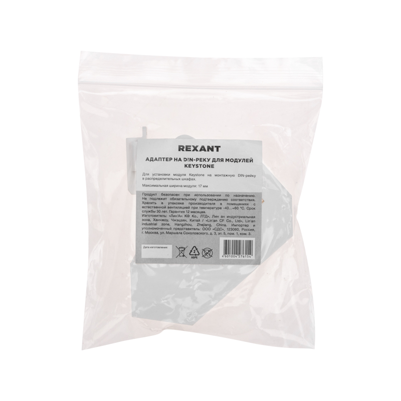 Адаптер предназначен для установки модуля Keystone на монтажную DIN-рейку в распределительных шкафах.