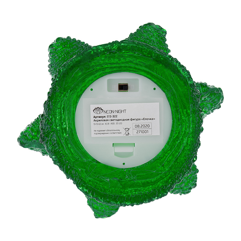 Светодиодная фигура «Елочка» высотой 22 см выполнена из акрила с применением технологии нанесения материала, которая обеспечивает приятную фактурную поверхность. 20 ярких диодов излучают приятный белый свет и эффектно подсвечивают композицию изнутри. Двух батареек типа АА, устанавливаемых в аккумуляторный блок, хватает более чем на 48 часов непрерывной работы. Светодиодная фигура «Елочка» станет оригинальным украшением интерьера, подарит праздничное настроение окружающим. Декоративное изделие на батарейках абсолютно безопасно — подходит для размещения в детских комнатах.