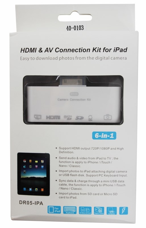 Комбинированный AV кабель Dux 40-0103 подключается к вашему устройству или к универсальной док-станции через 30-контактный разъём