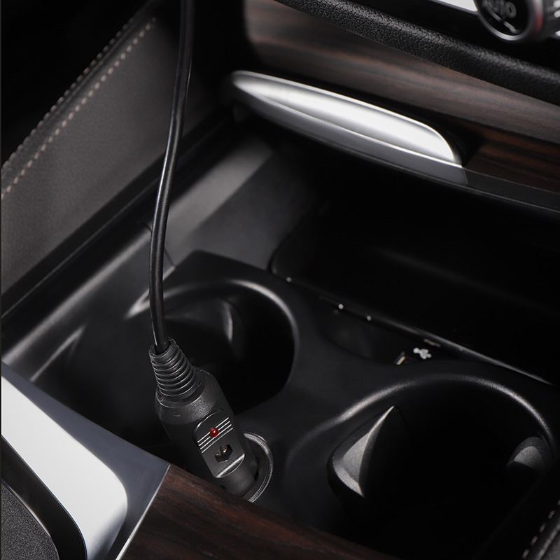 Корпус штекера прикуривателя изготовлен из термостойкого и прочного пластика и имеет LED индикатор питания. Для практичного подключения устройств разъем питания выполнен угловым. Шнур оптимальной длины обеспечит питание устройства в необходимом и удобном установленном месте.