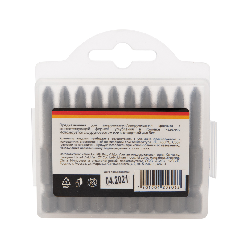 Благодаря хвостовику такая бита подойдет для установки на все виды шуруповертов и отверток-адаптеров. Удобная пластиковая групповая упаковка по 10 шт. обеспечивает удобство и дополнительную выгоду при отпуске товара по 1 шт.