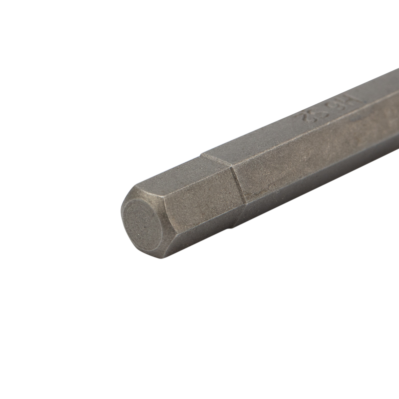 Изготовлена из легированной высокопрочной стали S2, что дает повышенную устойчивость к изломам и деформации в наиболее нагружаемых точках касания. Размер наконечника HEX-6 подходит для работы со шлицами с резьбовым диаметром 6 мм. Намагниченный наконечник облегчает крепление и фиксацию крепежа на бите. Шестигранный хвостовик надежно фиксирует биту в патроне инструмента и не дает ей проворачиваться.