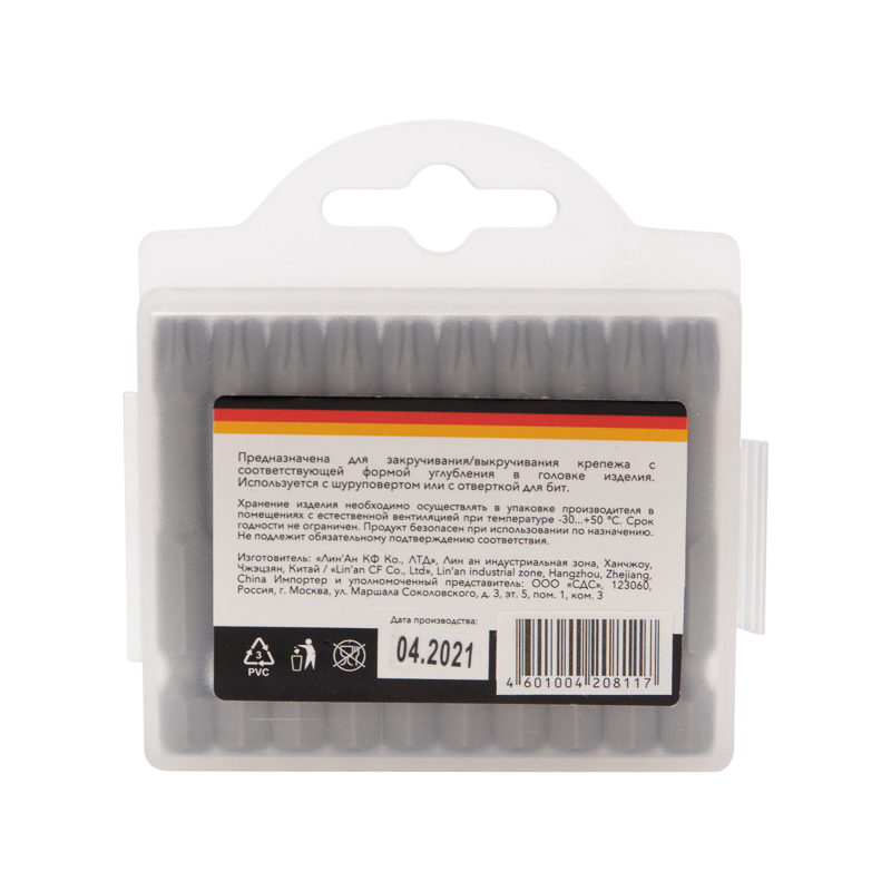 Благодаря хвостовику такая бита подойдет для установки на все виды шуруповертов и отверток-адаптеров. Удобная пластиковая групповая упаковка по 10 шт. обеспечивает удобство и дополнительную выгоду при отпуске товара по 1 шт.