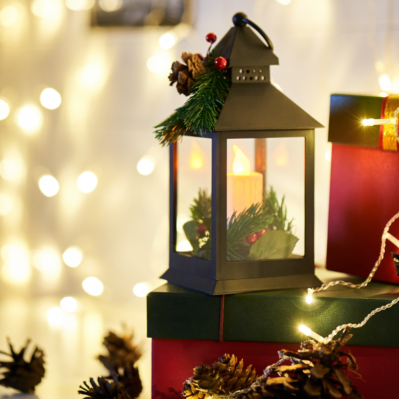 Декоративный фонарь со свечкой символизирует уют и домашнее тепло. Изделие станет прекрасным украшением праздничного и повседневного интерьера, подарит ощущение комфорта в зимний вечер. Главное преимущество светодиодного фонаря – безопасность использования: светодиод не нагревается – не может повредить окружающие предметы и нанести ожоги при прикосновении. Фигурка имитирует горение аутентичной свечи, отбрасывая мягкие эффектные тени. Фонарь питается от 3 батареек тип ААА и имеет клавишу ON/OFF.