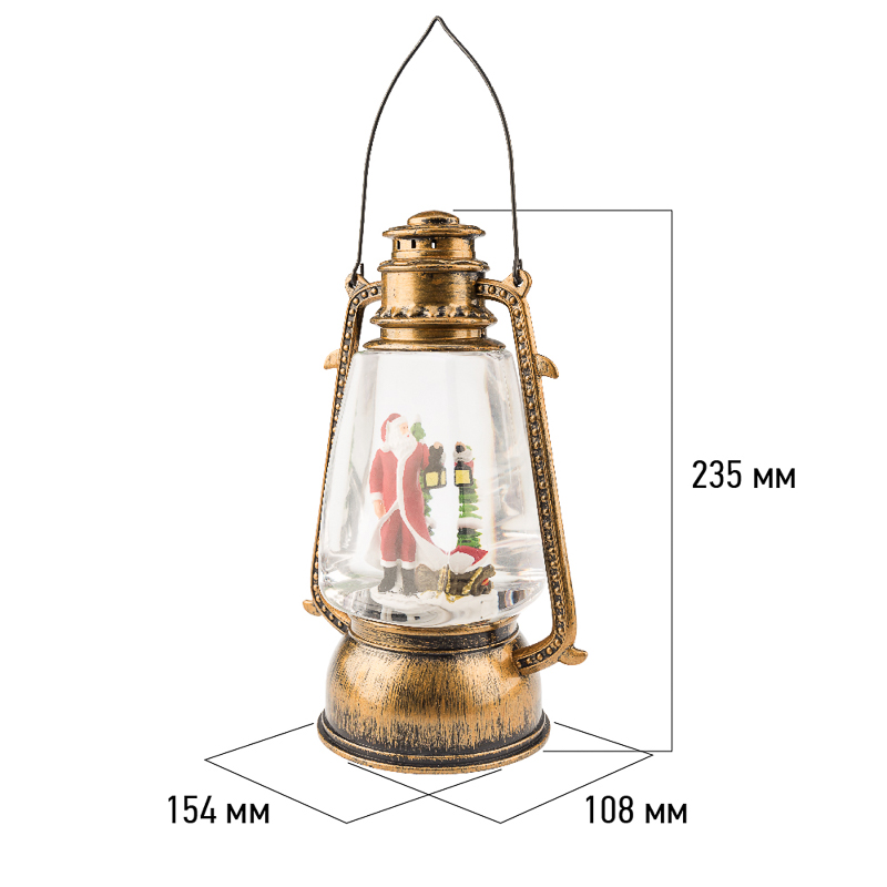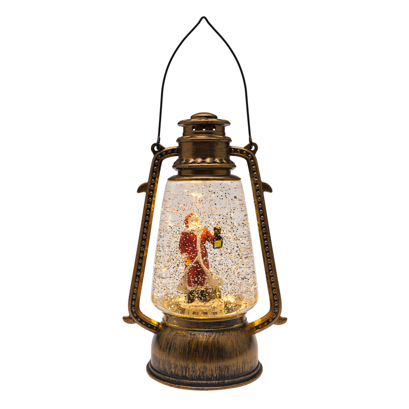 Декоративный фонарь с эффектом снегопада и подсветкой NEON-NIGHT«Санта-Клаус» является оригинальным интерьерным украшением. Корпус светильника выполнен из прочного гипоаллергенного ABS-пластика. Внутри колбы из прозрачного стекла, заполненной специальной жидкостью, размещена декоративная фигурка Санта Клауса. В основании фонаря установлен специальный компрессор: при включении изделия он начинает разгонять жидкость, создавая вихрь золотистых блесток. Композиция подсвечивается 2 долговечными яркими диодами теплого белого оттенка. Фонарь функционирует от 4 батареек типа AAA (не входят в комплект), что обеспечивает его автономность и предоставляет возможность размещать в любом удобном месте. В комплекте предусмотрен USB-кабель для альтернативного подключения. Клавиша ON/OFF расположена на задней стенке корпуса. Если конфетти кружатся недостаточно активно, стоит встряхнуть фонарь: блестки могут забиваться в компрессор и препятствовать нормальному потоку жидкости.