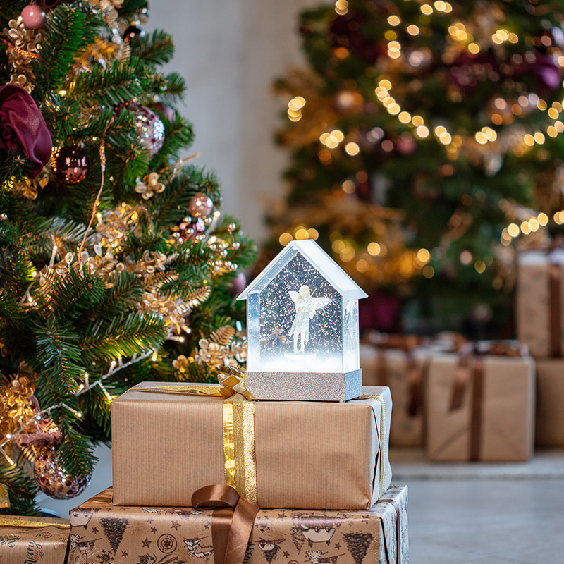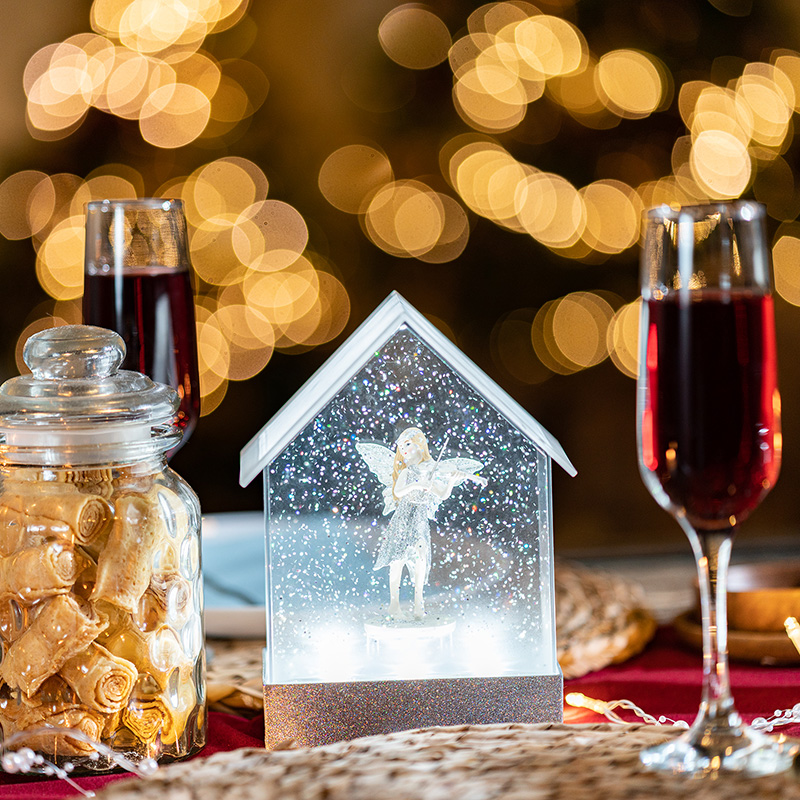 Фонарь наполнен специальной жидкостью и конфетти, которые при включении начинают циркулировать, создавая атмосферу праздника и уюта.