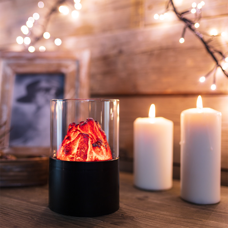 Декоративный светильник «Лава» имеет размеры 10 см в высоту и 16,5 см в диаметре. Корпус со стеклянной колбой выполнен в форме цилиндра. Внутри находится имитация горной породы, которая подсвечивается 10 диодами, создающими эффект игры огня в раскаленной лаве. Светильник работает от 3 элементов питания типа АА. Независимость от розетки позволяет разместить его в любом уголке дома. Оригинальный декор украсит интерьер, принесет ощущение тепла, уюта, разнообразит обстановку.