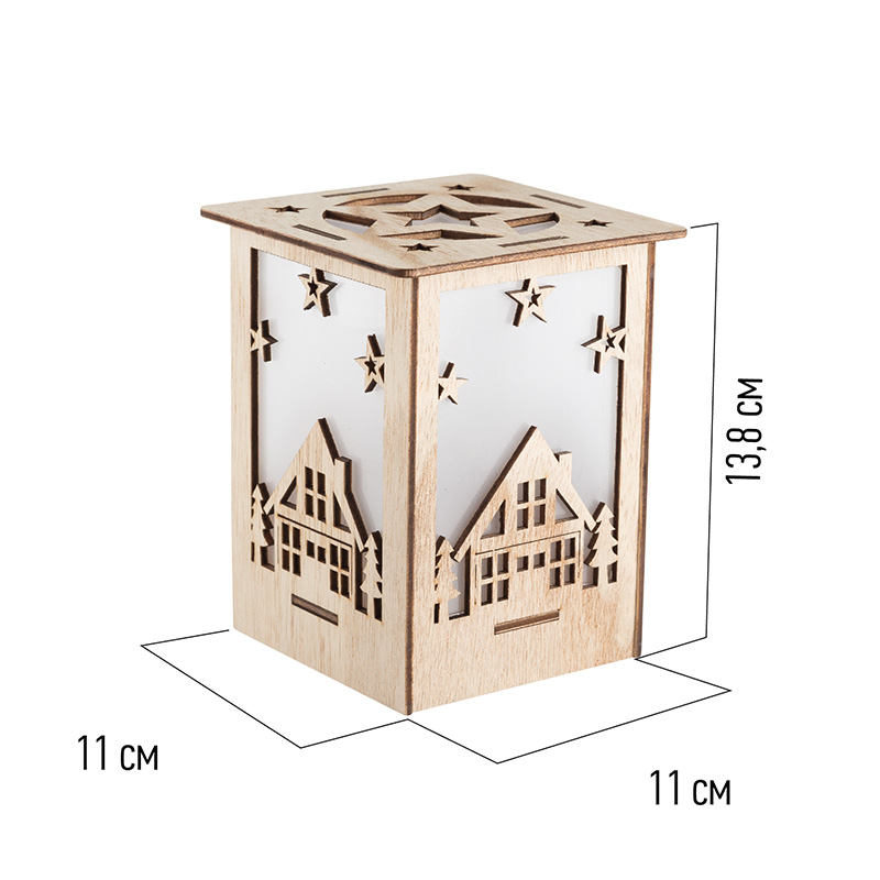 Деревянная фигурка с подсветкой «Волшебный фонарик» 13,8×11×11 см создана, чтобы гармонично украсить ваш интерьер, наполнить дом уютом, теплом и создать ощущение комфорта. Светодиодный декор выполнен в виде фонаря в прямоугольном корпусе из натуральной древесины. Экологичный материал не вызывает аллергии. 1 яркий диод мягко подсвечивает резные фигурки домиков. Изделие питается от 1 батарейки CR2032, которая входит в комплект. Деревянная фигурка с подсветкой — прекрасный подарок для родных и друзей.