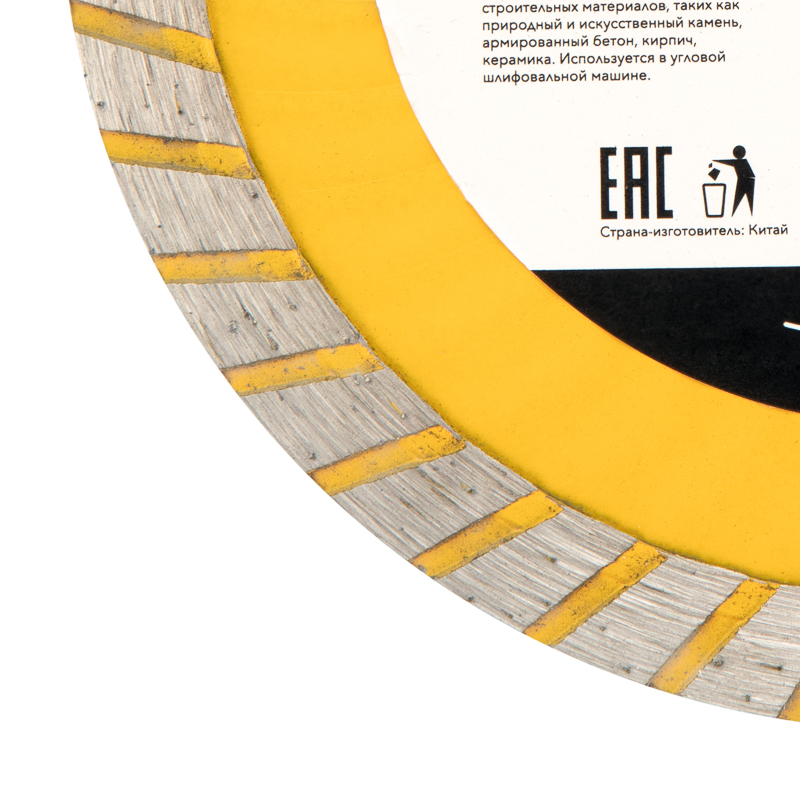 Внимание! Запрещается использовать диск для разрезания металлов. При установке диска руководствуйтесь стрелкой направления вращения диска. Используйте средства индивидуальной защиты. Не утилизируйте с бытовыми отходами.