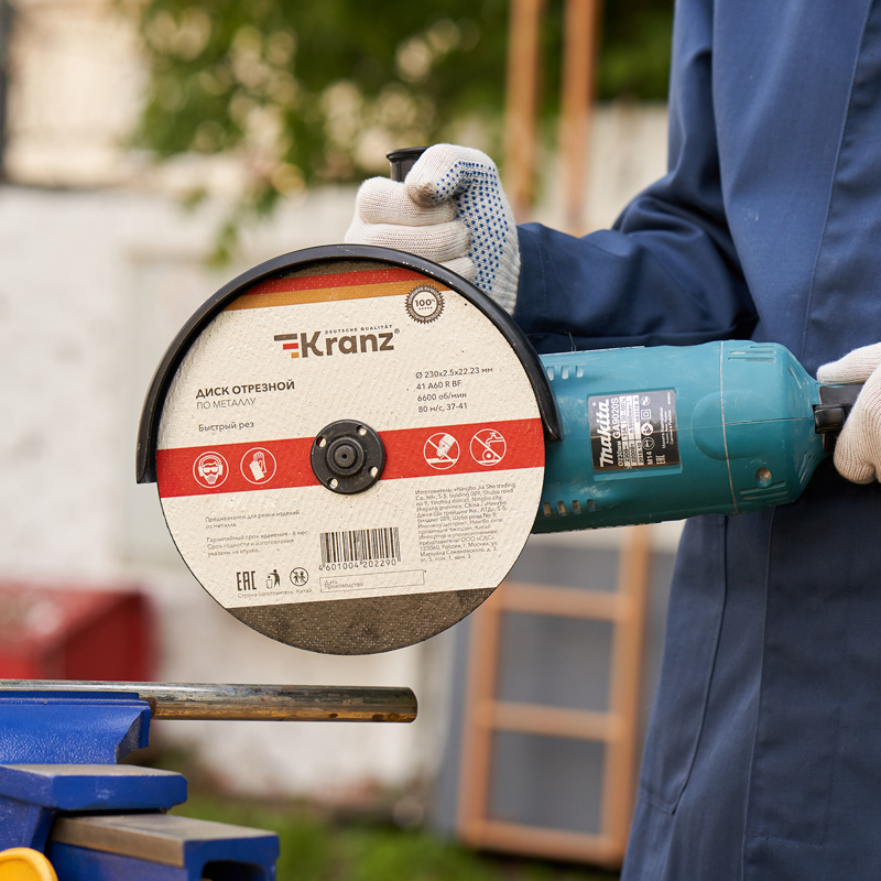 Отрезной диск KRANZ используется для обрезки и обработки тонкостенных металлических изделий, таких как листы, трубы, профили, проволока и т.д.