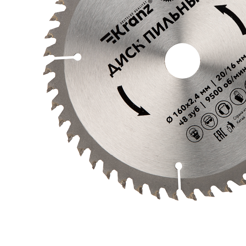 Корпус диска изготовлен из высококачественной закаленной инструментальной стали, благодаря чему устойчив к деформациям. Благодаря твердосплавным напайкам из карбида вольфрама ВК8 твердостью 89-92 HRC и высококачественной лазерной заточке, распил заготовок получается более качественным. Надежную фиксацию напаек к зубьям обеспечивает припой с высоким содержанием серебра. Компенсационные пазы минимизируют деформацию диска при перегреве, благодаря чему диск дольше сохраняет свои рабочие свойства.