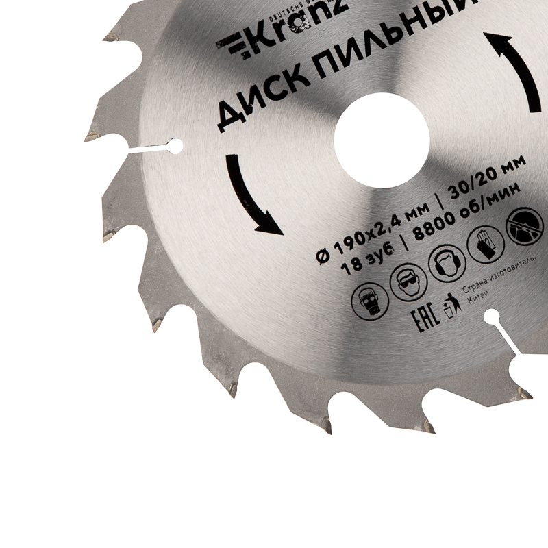 Корпус диска изготовлен из высококачественной закаленной инструментальной стали, благодаря чему устойчив к деформациям. Благодаря твердосплавным напайкам из карбида вольфрама ВК8 твердостью 89-92 HRC и высококачественной лазерной заточке, распил заготовок получается более качественным. Надежную фиксацию напаек к зубьям обеспечивает припой с высоким содержанием серебра. Компенсационные пазы минимизируют деформацию диска при перегреве, благодаря чему диск дольше сохраняет свои рабочие свойства.