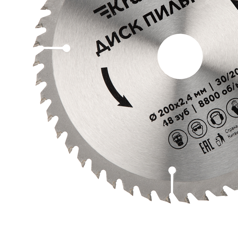Корпус диска изготовлен из высококачественной закаленной инструментальной стали, благодаря чему устойчив к деформациям. Благодаря твердосплавным напайкам из карбида вольфрама ВК8 твердостью 89-92 HRC и высококачественной лазерной заточке, распил заготовок получается более качественным. Надежную фиксацию напаек к зубьям обеспечивает припой с высоким содержанием серебра. Компенсационные пазы минимизируют деформацию диска при перегреве, благодаря чему диск дольше сохраняет свои рабочие свойства.