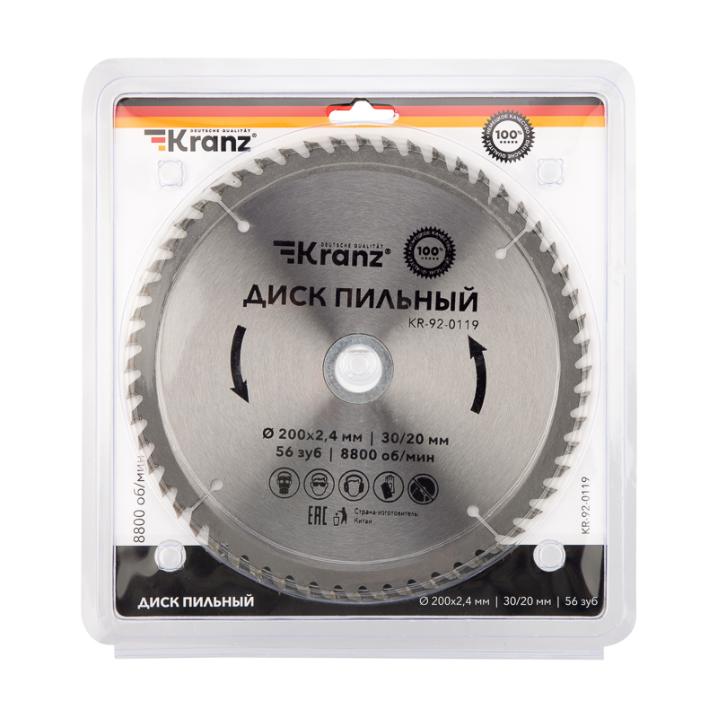 Диск пильный 200 мм х 56 зуб х 30/20 мм KRANZ