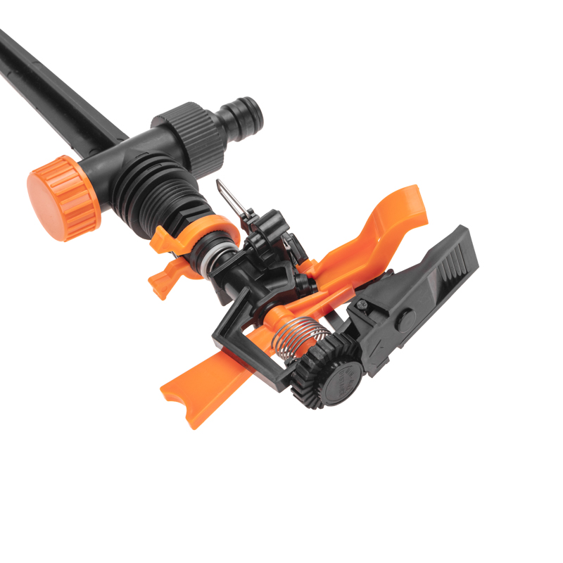 Конструкция основана на принципе импульсного распределения воды, что позволяет создавать мощные и длинные струи воды, обеспечивая равномерный полив даже на больших площадях.