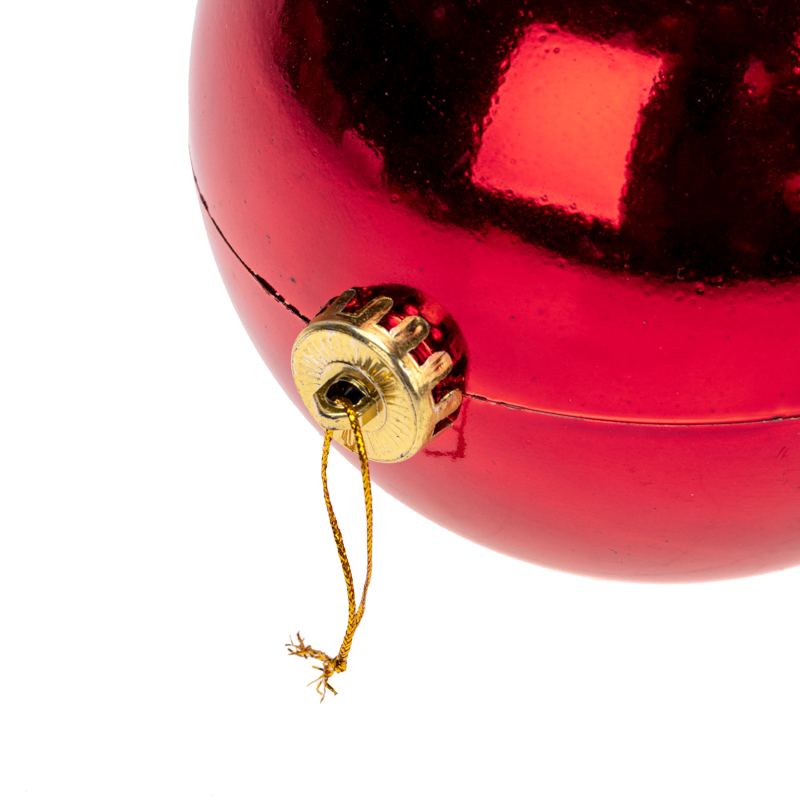 Данный шар имеет диаметр 15 см, цвет красный глянцевый, выполнен из пластика.