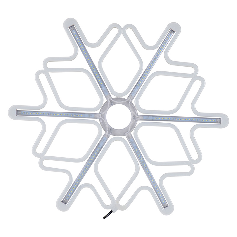 «Снежинка» имеет размер 60х60 см, выполнена из белого неона и белых светодиодных лучей.
