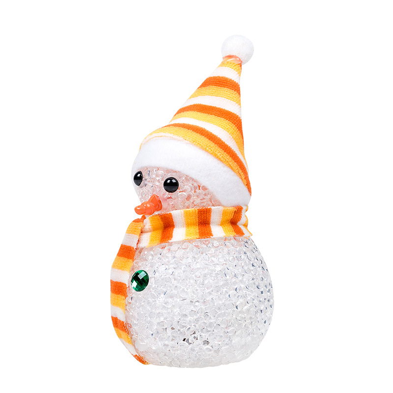 Светодиодная фигура «Снеговик» высотой 17 см выполнена в виде милого новогоднего персонажа, одетого в текстильные шарф и шапочку. Фактурные снежные комья, из которых собран снеговик, изготовлены из пластика EVA — современного, безопасного, прочного материала. RGB светодиод эффектно подсвечивает композицию, меняя оттенки в хаотичном режиме. Светодиоды экономно тратят заряд трех батареек типа AG13, находящихся в специальном аккумуляторном блоке. Элементы питания идут в комплекте.