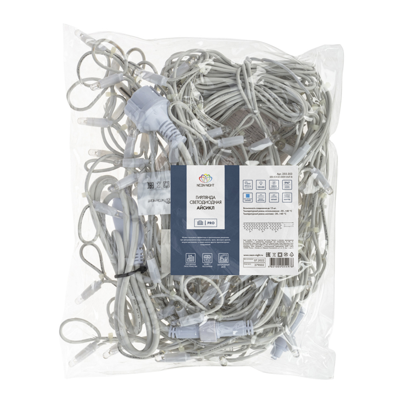 Гирлянда Айсикл (Бахрома) представляет собой гибкий горизонтальный шнур-шину, к которому через определенные промежутки крепятся вертикальные нити разной длины со светодиодами.