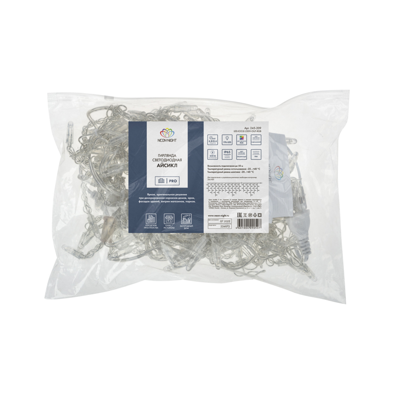 Для подключения к сети и использования всех возможностей гирлянды (управление цветом свечения и настройка светодинамических режимов) используется контроллер арт. 245-908 (приобретается отдельно).