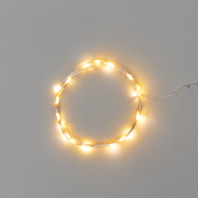 Гирлянда «Роса» длиной 2 метра питается от двух элементов типа CR2032, которые находятся в батарейном блоке на конце провода. Независимость от розетки открывает большие возможности в создании светового декора, а гибкий кабель с эффектом памяти позволяет формировать самые сложные фигуры.Благодаря абсолютной безопасности способа питания, изделие прекрасно подходит для оформления детских комнат. 20 диодов светятся яркими желтыми огнями и работают до 48 часов от одного комплекта батареек.