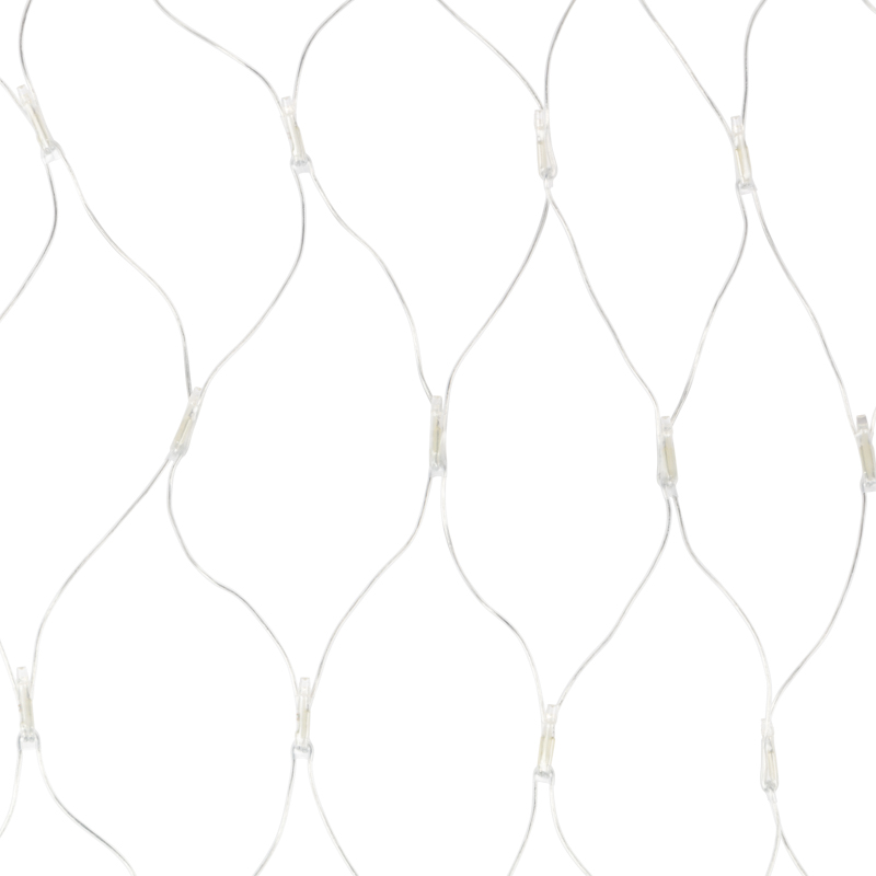 Светодиодная гирлянда Сеть выполнена в форме прямоугольника, разделенного на равные ромбы. В углах этих ромбов располагаются светодиоды теплого белого цвета.