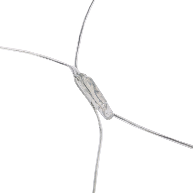 Светодиодная гирлянда Сеть выполнена в форме треугольника, разделенного на равные ромбы. В углах этих ромбов располагаются светодиоды теплого белого цвета. Длина основания –1,5 м, боковых сторон – 2 м.