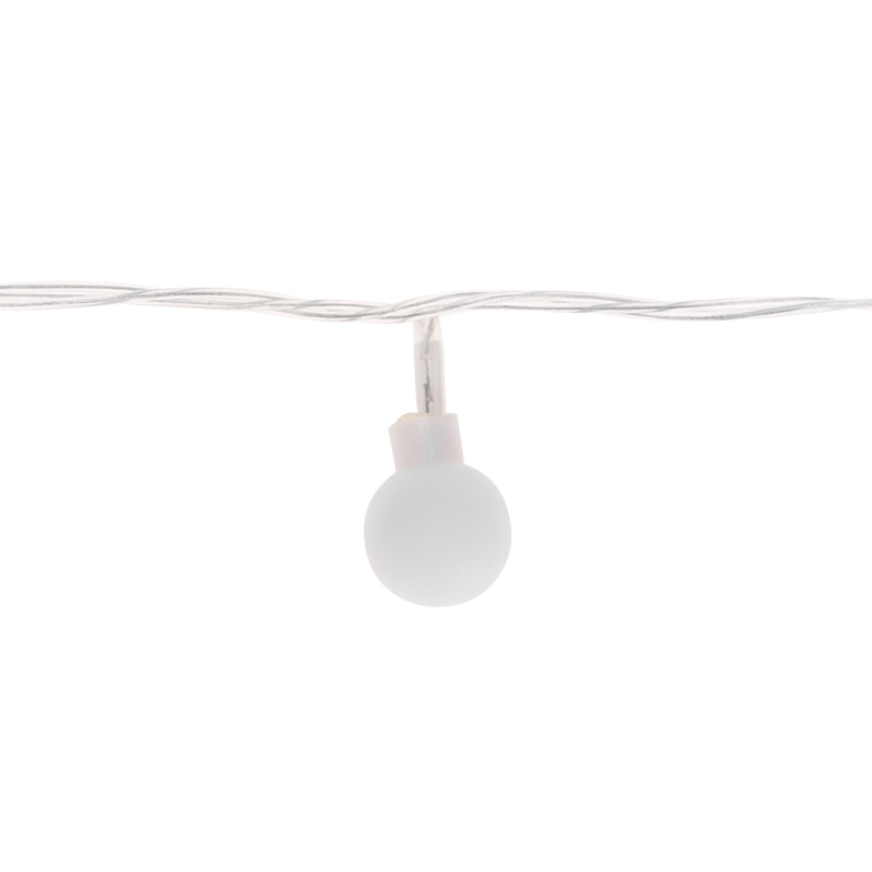 Светодиодная гирлянда Шарики длиной 5 метров выполнена в виде прозрачного ПВХ шнура с матовыми круглыми насадками, которые светятся разными цветами. Всего в гирлянде 20 экономичных светодиодов, которые не перегорают со временем и не нагреваются, поэтому украшение будет долгое время радовать своих обладателей.