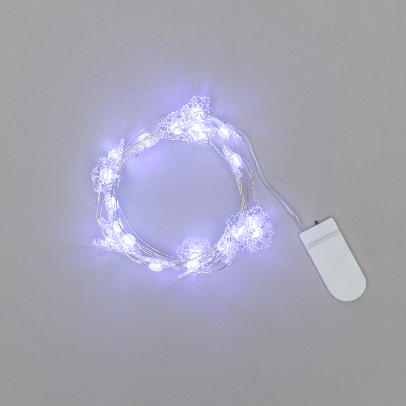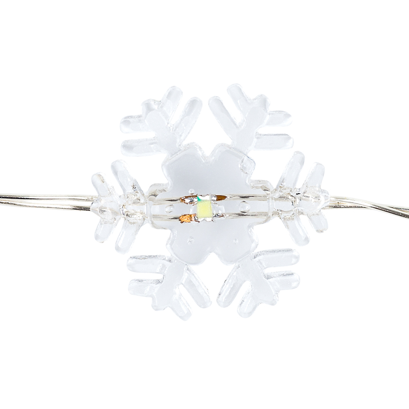 Гирлянда «Снежинки» длиной 2 метра — эффектное зимнее украшение, которое подарит ощущение сказки и приближающихся праздников. 20 ярких белых светодиодов находятся внутри пластиковых насадок, искусно выполненных в виде снежинок. Изделие не требует подключения к электросети: питается от двух источников CR2032, что говорит об абсолютной безопасности в использовании. Одного комплекта батареек хватает на 48 часов непрерывного свечения. . Серебристый кабель обладает способностью сохранять форму при изгибе — гирлянда идеально подходит для декора сложных конструкций.
