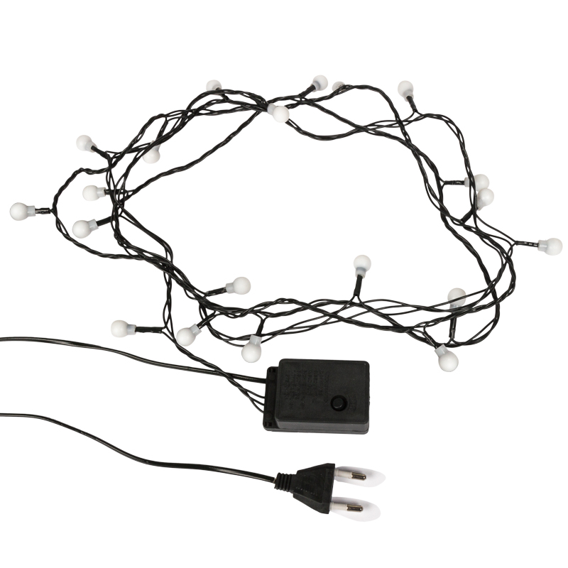 Светодиодная гирлянда «Цветные Шарики» длиной 2,8 метра выполнена в виде зеленого ПВХ шнура с матовыми круглыми насадками, которые светятся разными цветами. Всего в гирлянде 20 светодиодов. Контроллер с 8 режимами позволяет выбрать тип свечения по настроению: от постоянного до динамической пульсации. Экономичные светодиоды не перегорают со временем и не нагреваются, поэтому украшение будет долгое время радовать своих обладателей. Изделие предполагает размещение внутри сухих отапливаемых помещений. Гирлянда питается от электросети с напряжением до 230 Вольт.