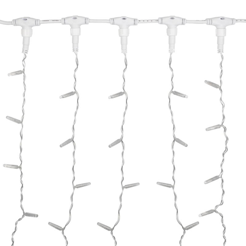 Светодиодная гирлянда Занавес (Дождь) представляет собой гибкий горизонтальный шнур-шину 2 м, к которому через определенные промежутки крепятся 16 вертикальных нитей равной длины со светодиодами.