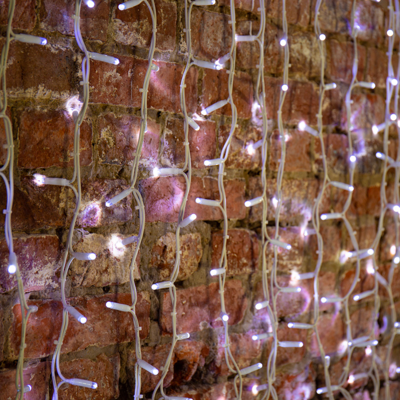 Гирлянда имеет белый цвет свечения. Светодинамические эффекты становятся доступными только при подключении гирлянды к сети через специальный контроллер.