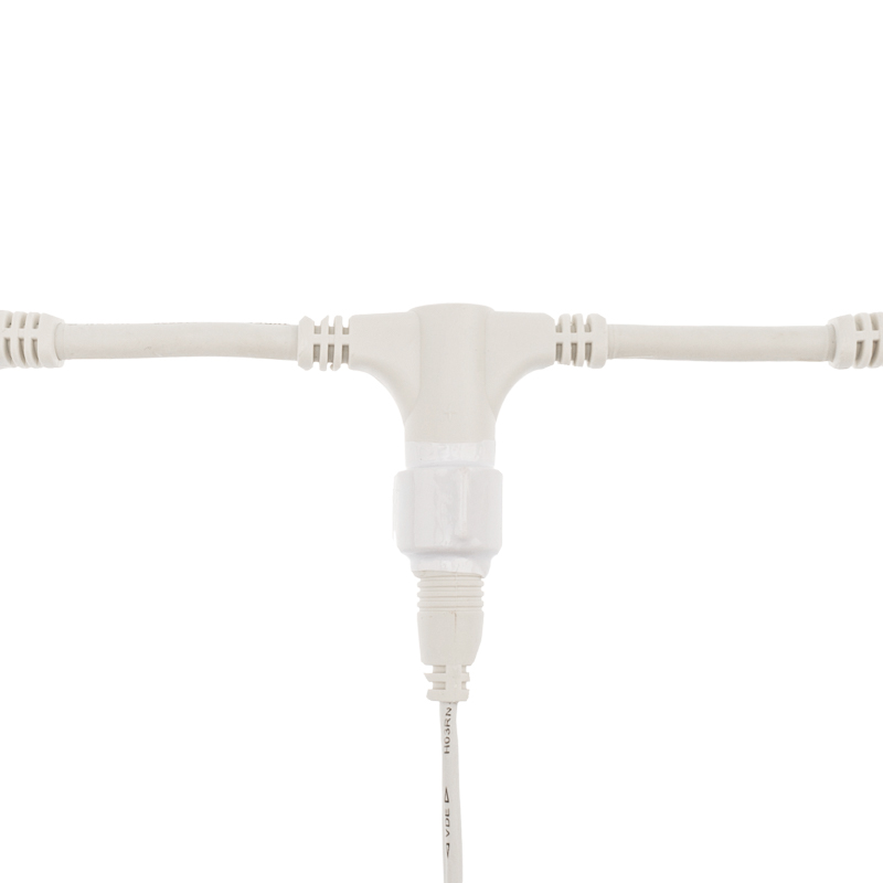 На концах шины располагаются коннекторы, которые предназначены для последовательного соединения нескольких гирлянд в большой занавес для украшения больших площадей или объемных объектов.