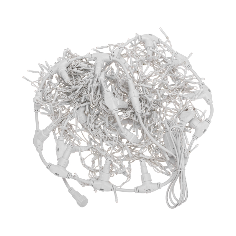 На концах шины располагаются коннекторы, которые предназначены для последовательного соединения нескольких гирлянд в большой занавес для украшения больших площадей или объемных объектов.