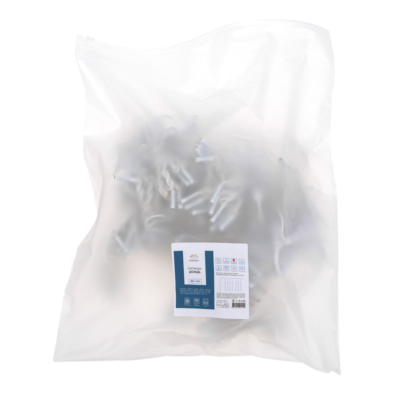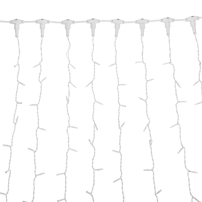 Светодиодная гирлянда Занавес (Дождь) представляет собой гибкий горизонтальный шнур-шину 2 м, к которому через определенные промежутки крепятся 20 вертикальных нитей равной длины со светодиодами.