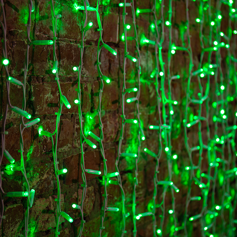 Гирлянда имеет зеленый цвет свечения. Светодинамические эффекты становятся доступными только при подключении гирлянды к сети через специальный контроллер.