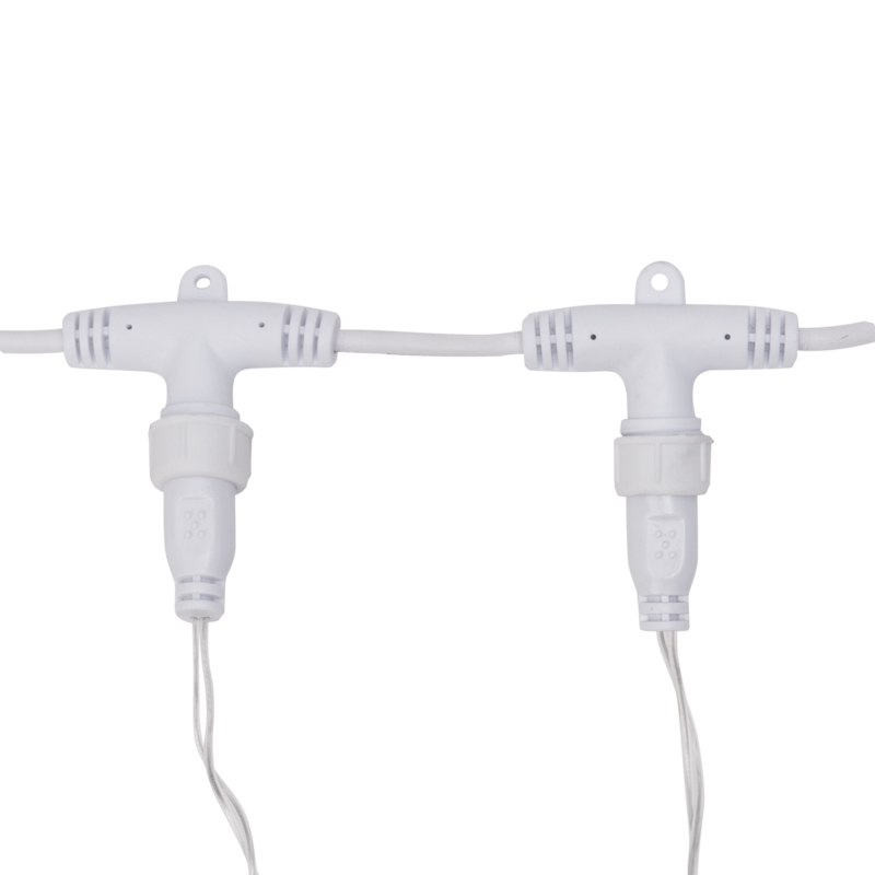 На концах шины располагаются коннекторы, которые предназначены для последовательного соединения нескольких гирлянд в большой занавес для украшения больших площадей или объемных объектов.