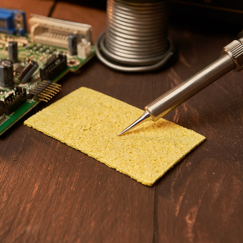 Губка для очистки паяльного жала 70x40 mm REXANT предназначена для удаления окислов с поверхности жала и избытков припоя (продлевает срок службы паяльника).