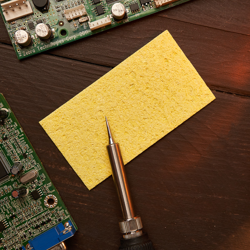 Губка для очистки паяльного жала 93x50 mm REXANT предназначена для удаления окислов с поверхности жала и избытков припоя (продлевает срок службы паяльника).
