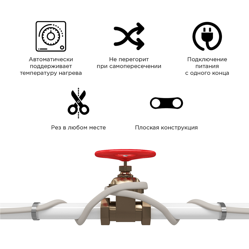 Саморегулирующийся греющий кабель SRL30-2 PROconnect мощностью 30 Вт/м предназначен для защиты от замерзания бытовых трубопроводов диаметром не более 150 мм, счетчиков воды, вентилей и так далее.