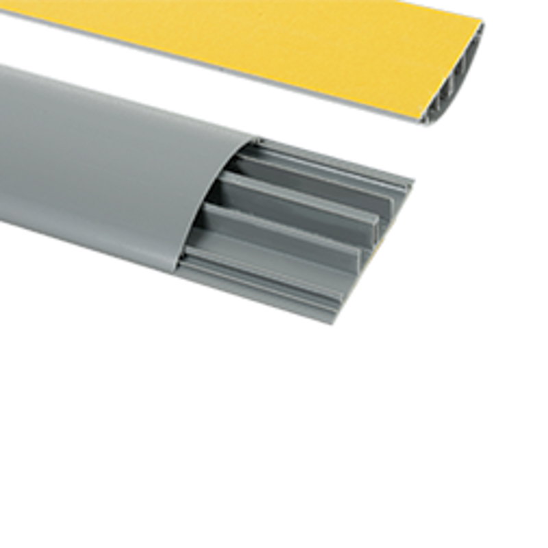 Изделие серого цвета (RAL 7035) эстетично скрывает кабельные линии, проходящие в помещении. Благодаря небольшой высоте короб не мешает проходу, что обеспечивает безопасность передвижения.
