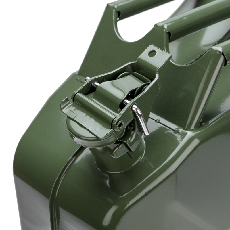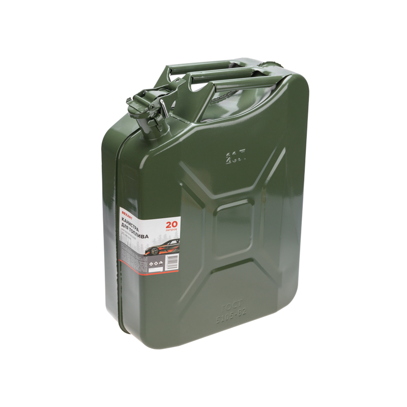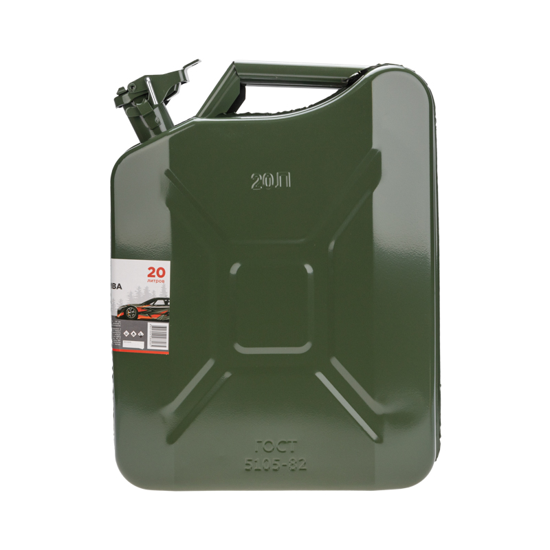 Канистра изготовлена из высококачественного металла, что обеспечивает долгий срок службы и устойчивость к механическим повреждениям.