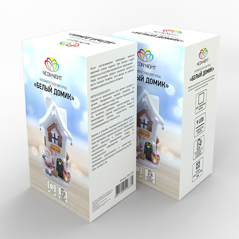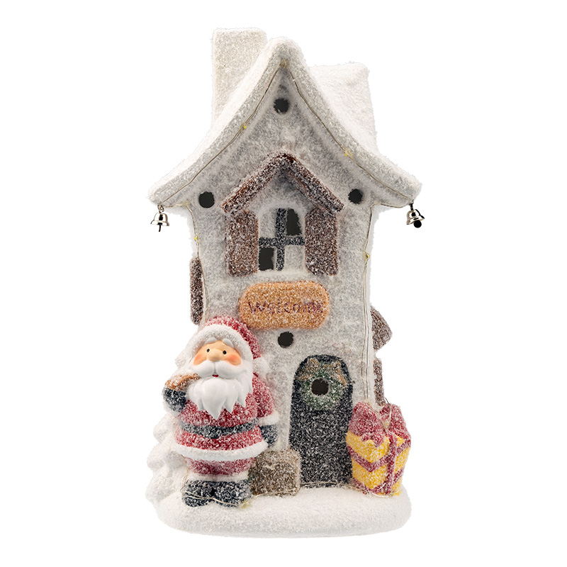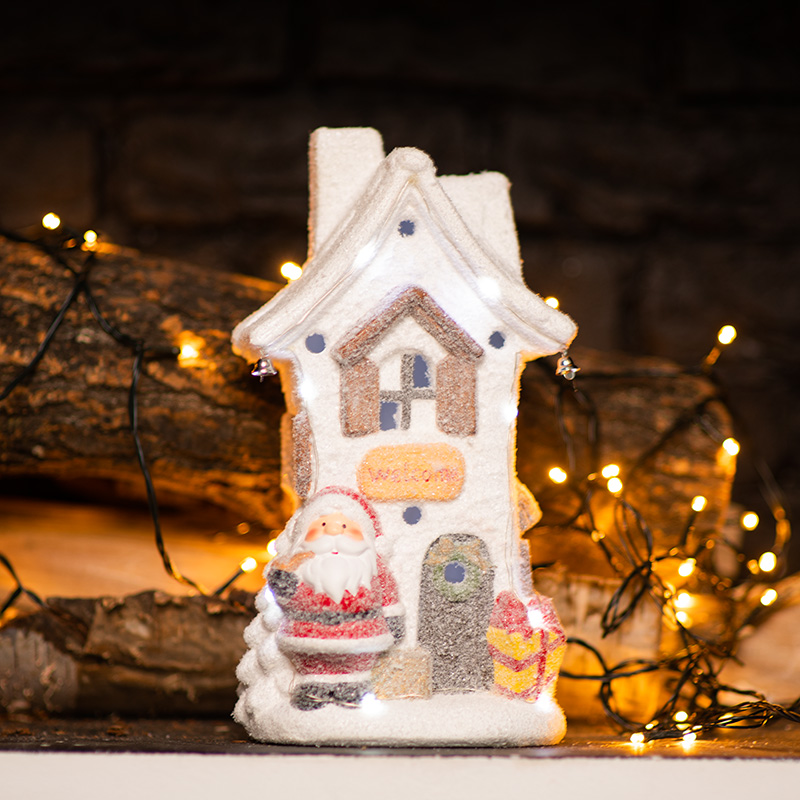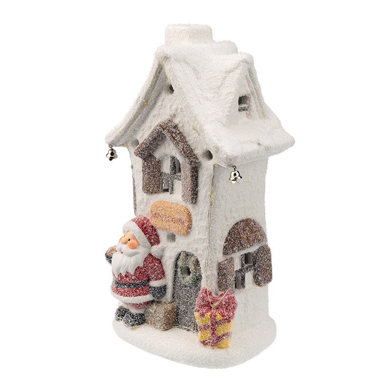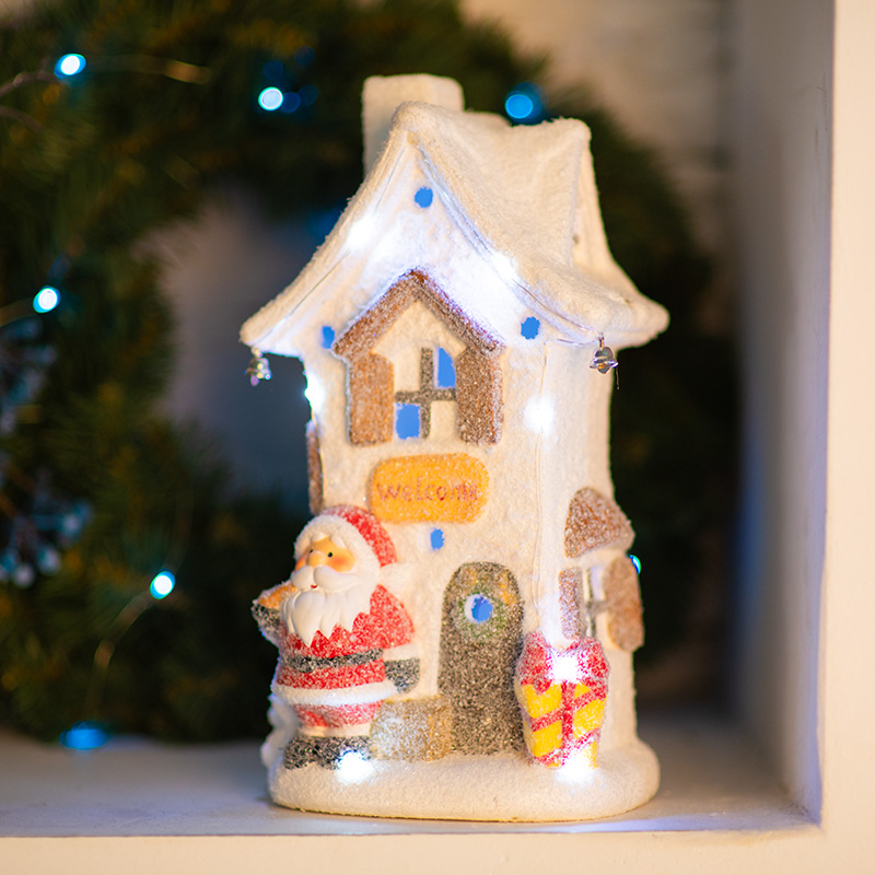 Керамическая фигурка «Белый домик» 15.7×11.7×28.4 см — интересное решение для оформления интерьера, которое поможет создать атмосферу уюта, почувствовать комфорт и тепло домашней обстановки. Экологичный материал, покрытый безопасным красящим составом, не вызывает аллергии, поэтому фигурка подходит для увлекательных детских игр. Милая композиция из домика, рядом с которым стоит Дед Мороз, подсвечивается 9 диодами, излучающими белый свет нейтрального оттенка. Декоративная фигурка работает от 2 батареек типа ААА.