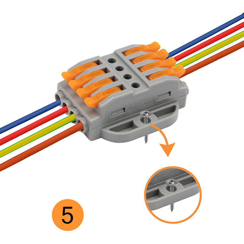 Многоразовые четырехпроводные клеммы REXANT с монтажной площадкой предназначены для соединения медных одножильных и многожильных зачищенных проводников тонкого сечения. Контакт осуществляется путем зажима проводника пластиной. Конструкция предотвращает случайное размыкание контакта. Специальное технологическое отверстие на корпусе клеммы предназначено для проверки соединения тестером-пробником или щупом мультиметра. Корпус из пластика делает контакт изолированным.