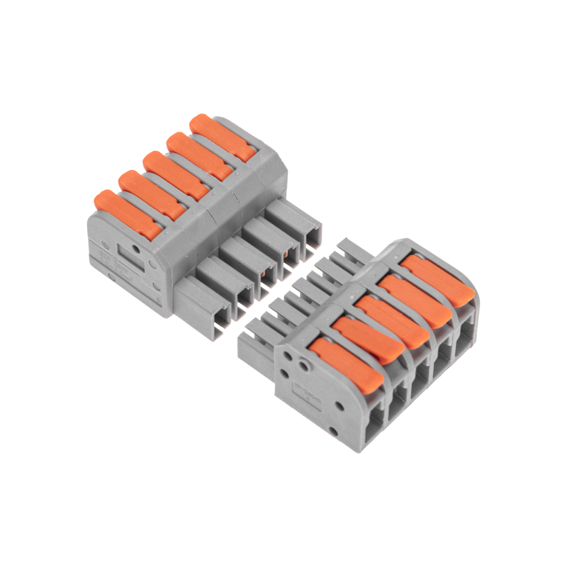 Многоразовая проходная клемма СМК REXANT с разъемным соединением предназначена для соединения медных одножильных и многожильных зачищенных проводников. Контакт осуществляется путем зажима проводника пластиной. Конструкция предотвращает случайное размыкание контакта.