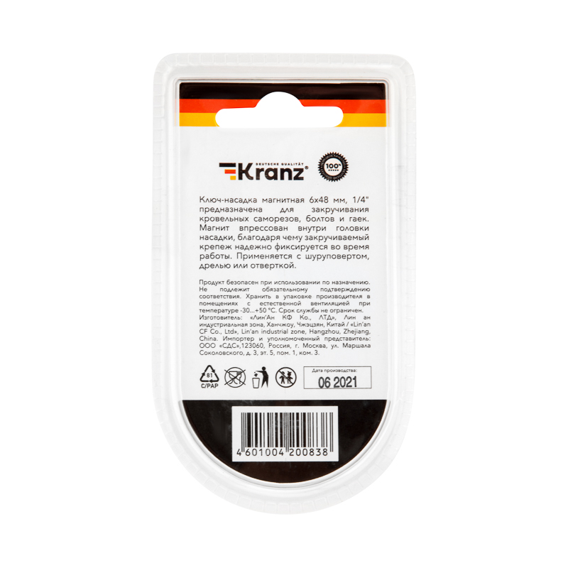 Ключ-насадка магнитная 1/4" 6х48 мм (2 шт./уп.) Kranz