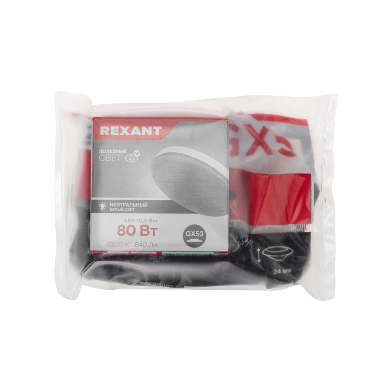 Комплект REXANT, состоящий из лампы и светильника GX53, предназначен для освещения бытовых и административных помещений в подвесных и натяжных потолках.