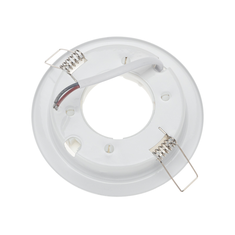 Корпус светильника выполнен из прочной стали белого цвета с глубиной монтажа 24 мм.