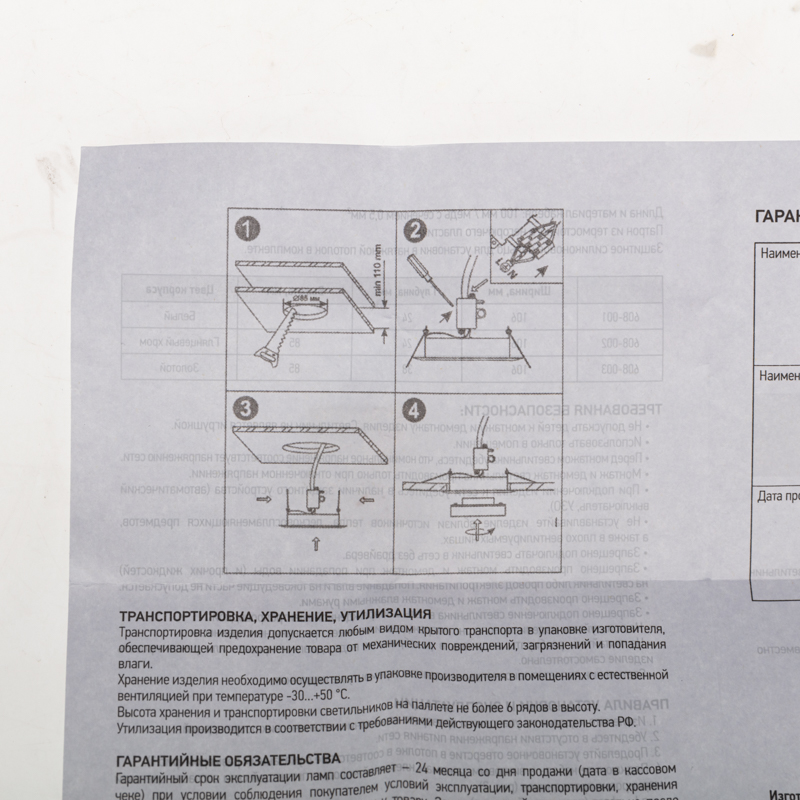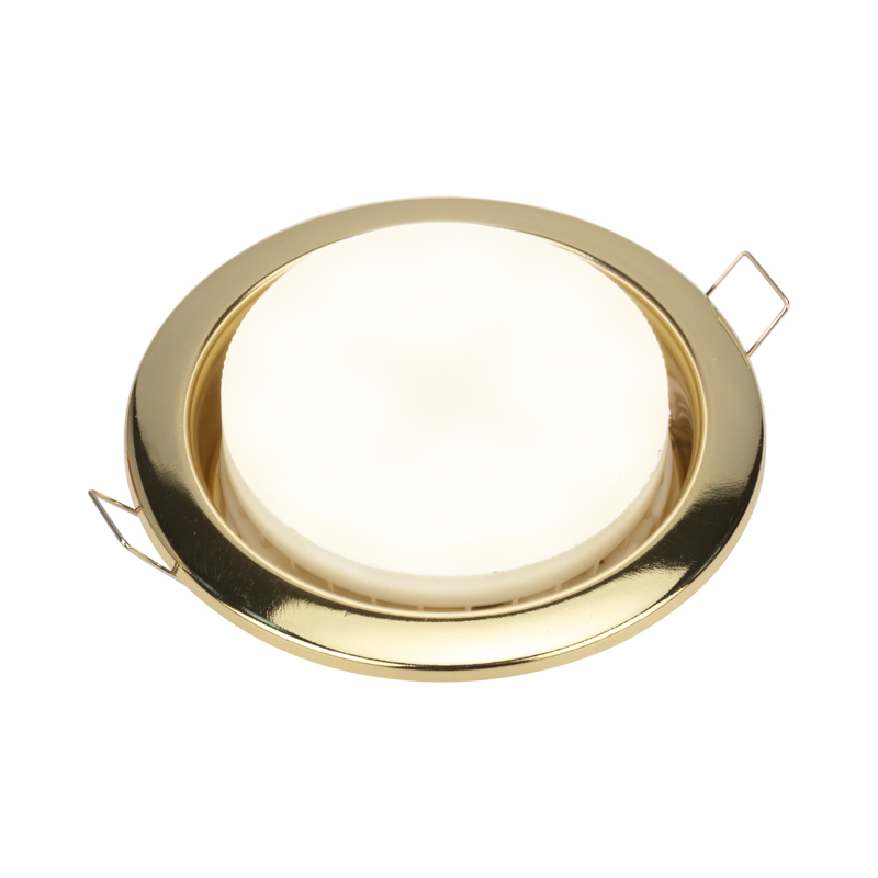 Корпус светильника выполнен из прочной стали золотистого цвета с глубиной монтажа 24 мм.
