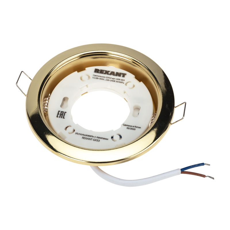 Комплект лампы и светильника GX53 «ЯРКИЙ ТЕПЛЫЙ ЗОЛОТОЙ» лампа 15,5 Вт теплого белого цвета свечения 2700 K и светильник под лампу GX53 золотистого цвета (604-067+608-003) REXANT